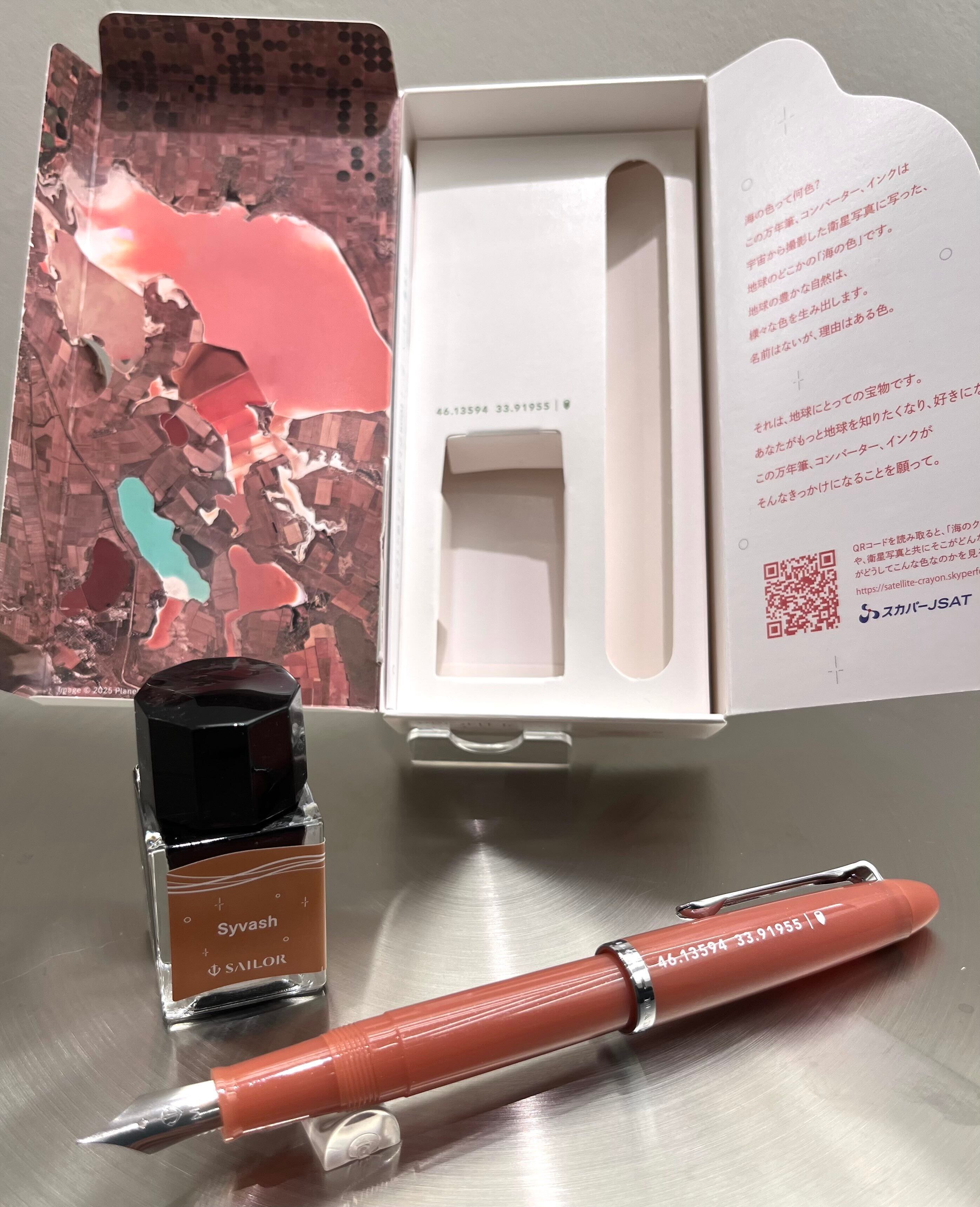 セーラー万年筆の海の万年筆は、宇宙から撮影した衛生写真に写った、地球のどこかの「海の色」です。