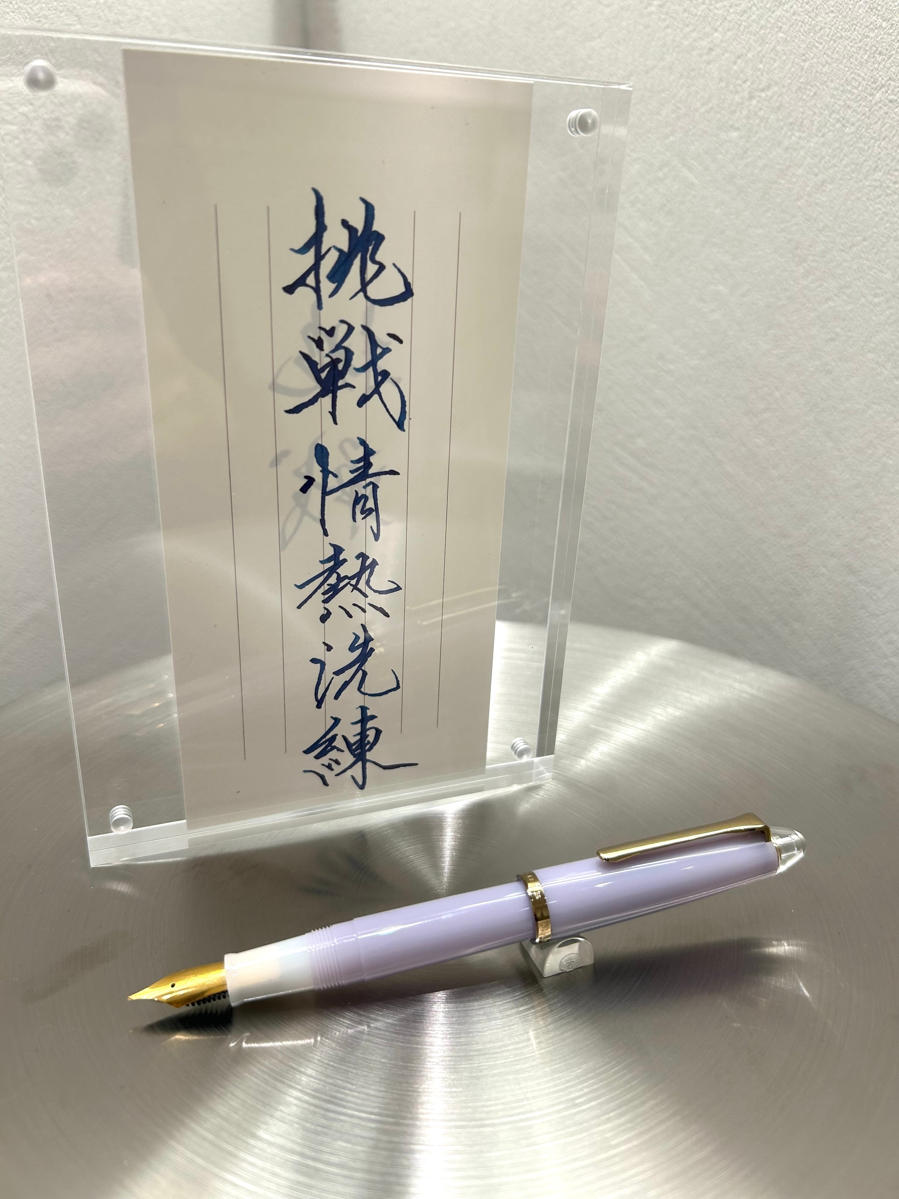 万年筆ビュッフェ Pick Who? 風琳’sコレクションの第三弾です 『Lady』 当店で毎月開催の美文字レッスンを行なっていただいてる風琳さんプロデュースの万年筆ビュッフェ’Pick Who?’ 第三弾です。店頭でも人気の柔らかなラベンダーカラーをメインに使った、上品なイメージの万年筆です。持っているだけで女性らしく、自分に自信をくれる一本になっています。