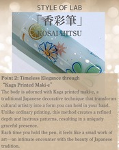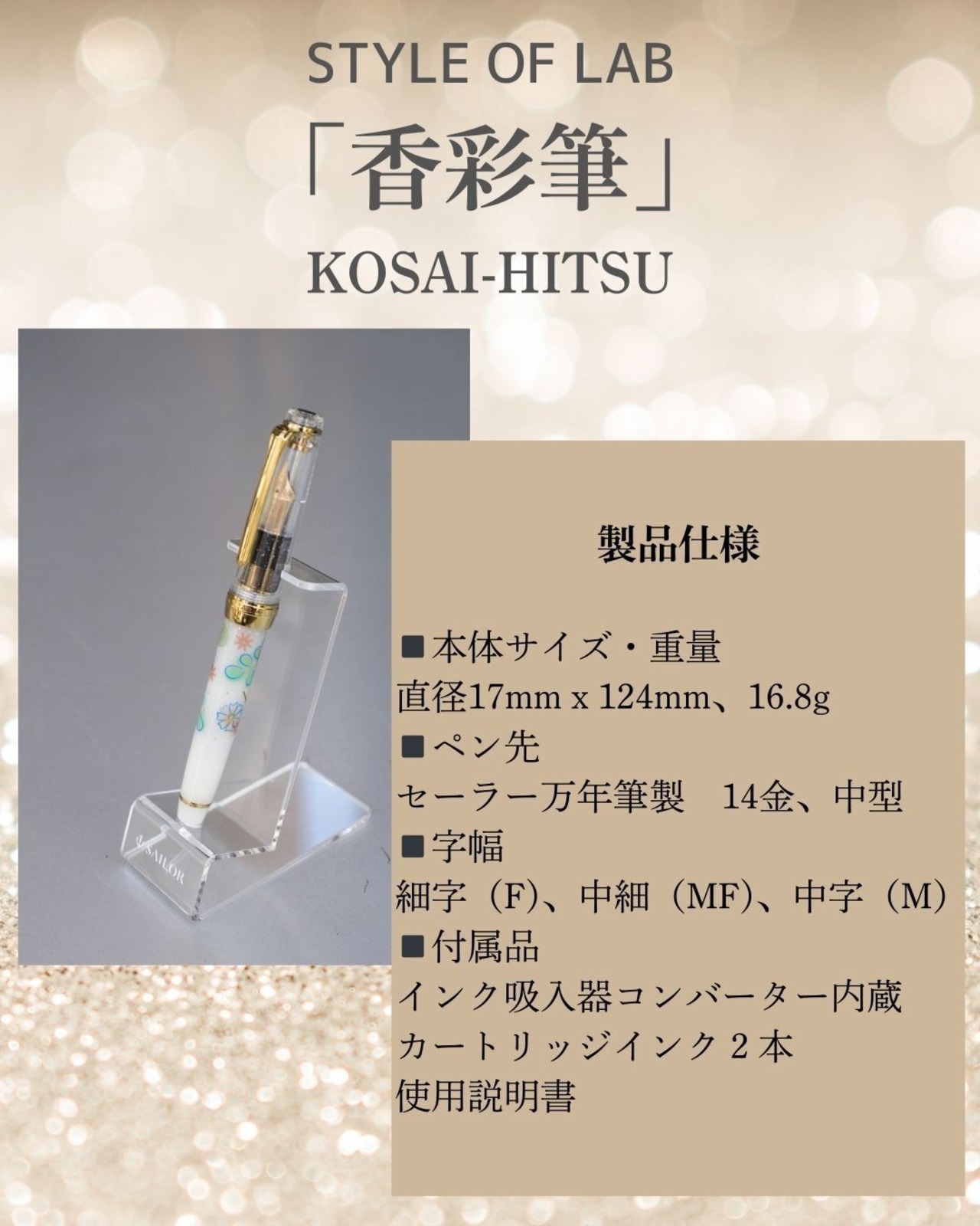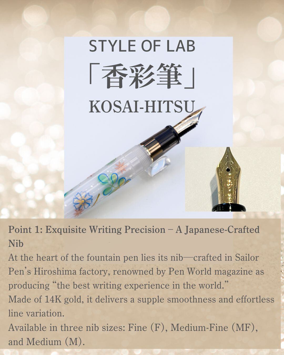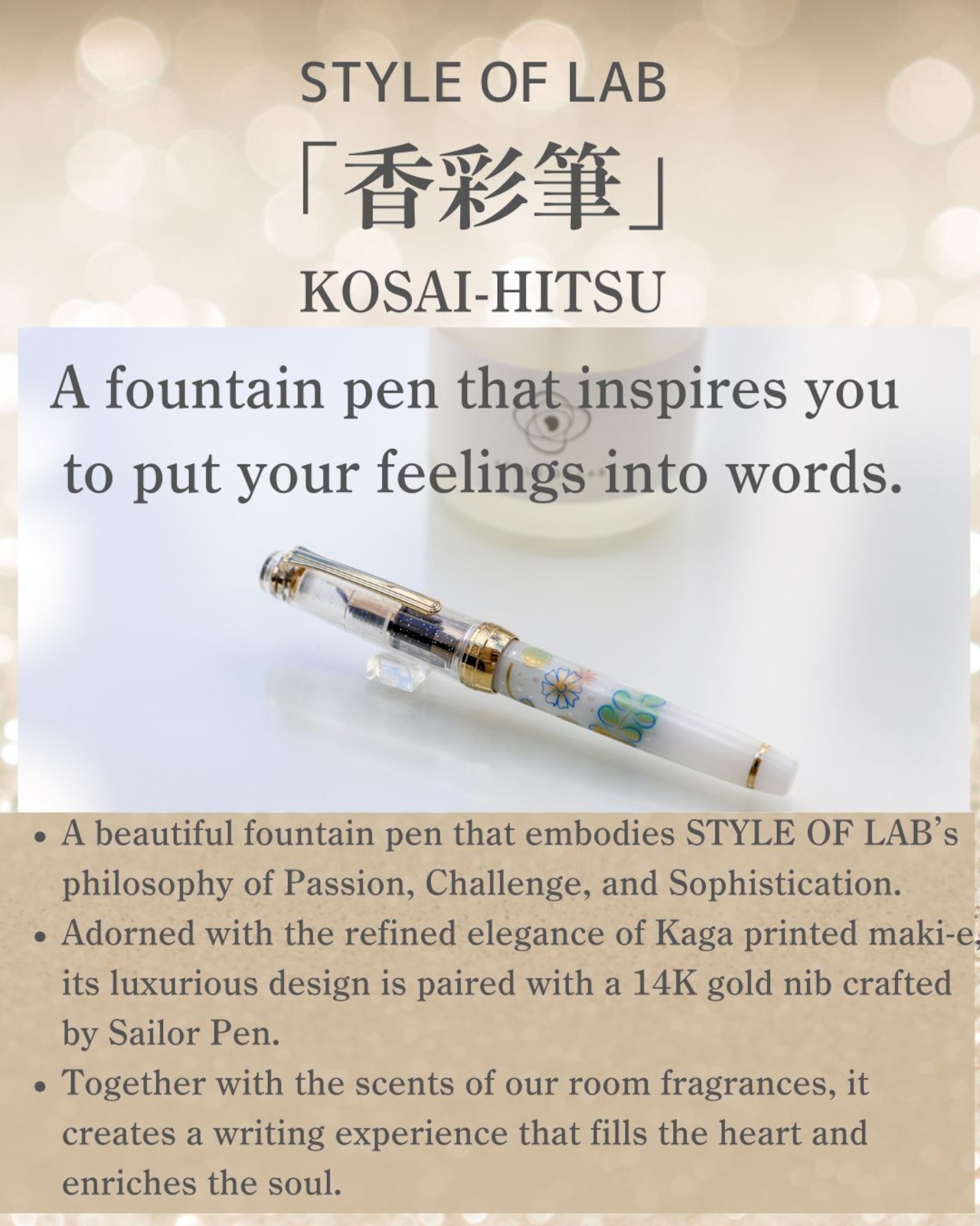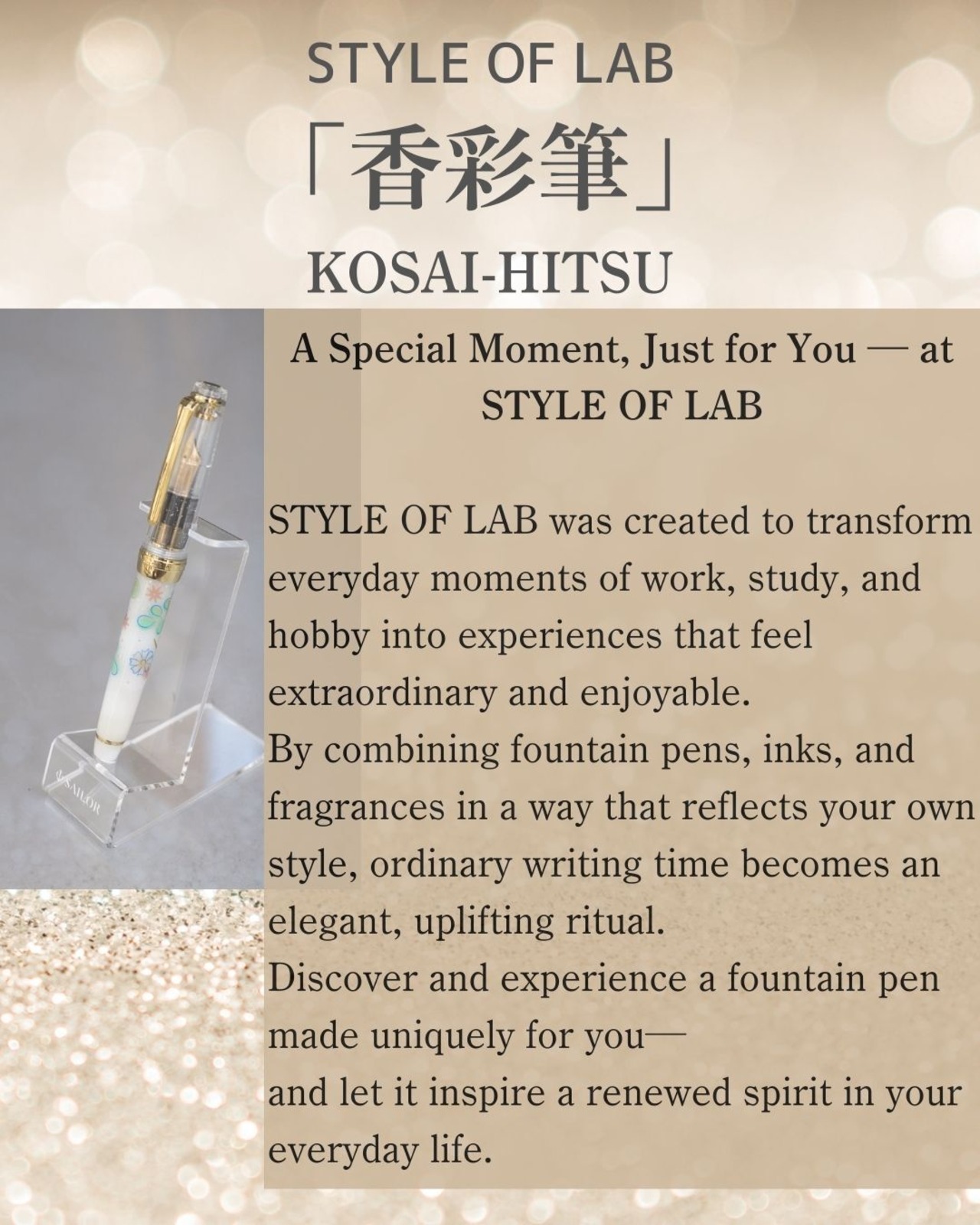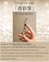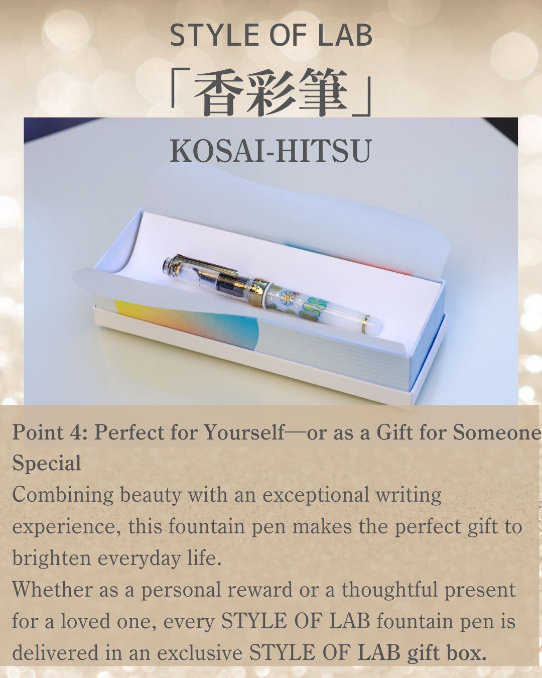 This set features STYLE OF LAB’s first original fountain pen, “KOSAI-HITSU,” paired with the STYLE OF LAB original fountain pen ink “#24.”