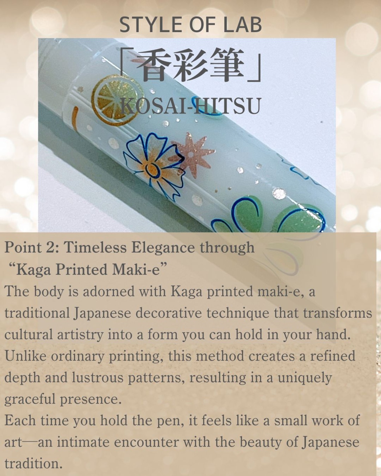 The pen body features Kaga printed maki-e, a traditional Japanese decorative technique.